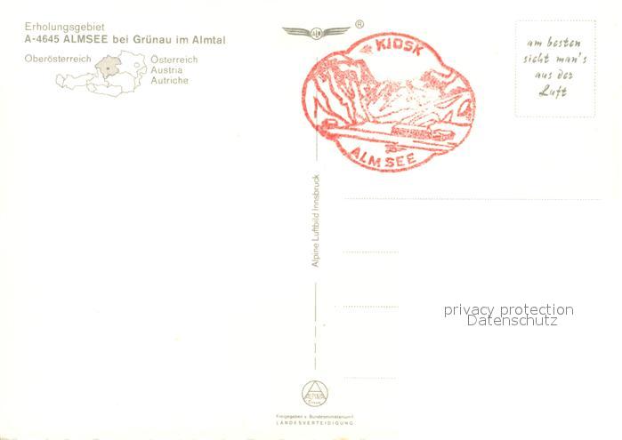 73291576 Almsee Fliegeraufnahme bei Gruenau im Almtal postalisch nicht gelaufen Erhaltung siehe scans [LiesaD40] KatCode: 11390315040707