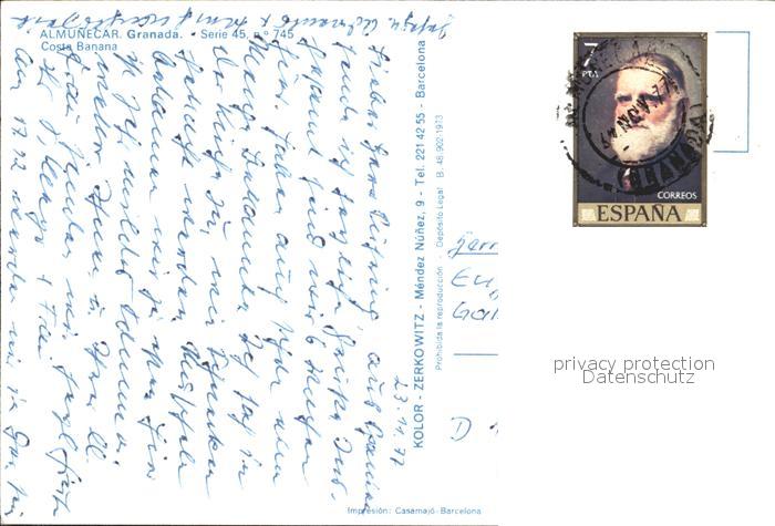old postcard Almunecar Costa Banana Strassenpartie postalisch gelaufen Erhaltung siehe scans