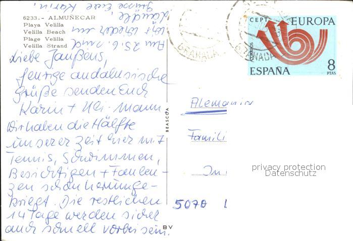 old postcard Almunecar Velilla Strand postalisch gelaufen Erhaltung siehe scans