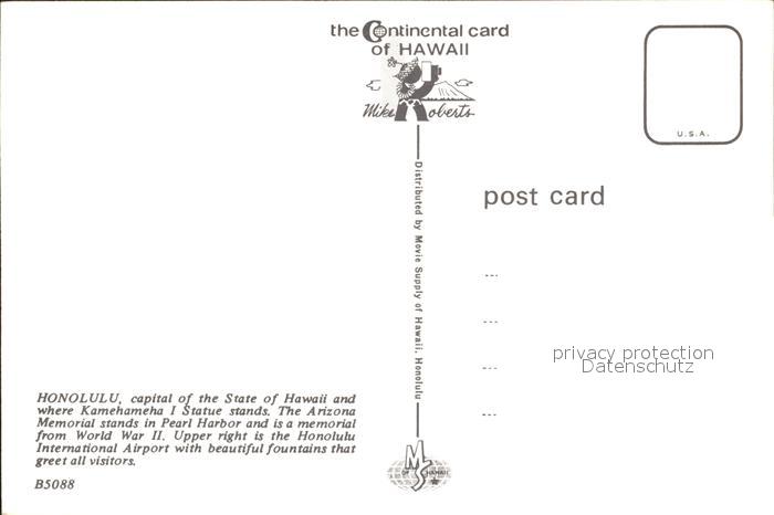 72059126 Aloha HonoluluStatue postalisch nicht gelaufen Erhaltung siehe scans KatCode: 14140400000000