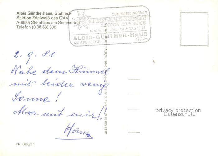 73230994 Alois-Guenther-Haus Haus Stuhleck postalisch nicht gelaufen Erhaltung siehe scans [LiesaD40] KatCode: 11390