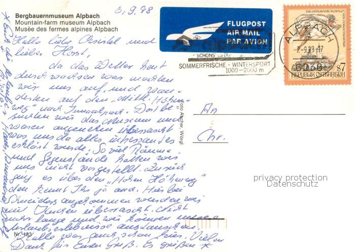 73753179 alte Postkarte Alpbach Bergbauernmuseum Alpbach Teilansichten postalisch gelaufen Erhaltung siehe scans [WerneD78] KatCode: 11390335070501