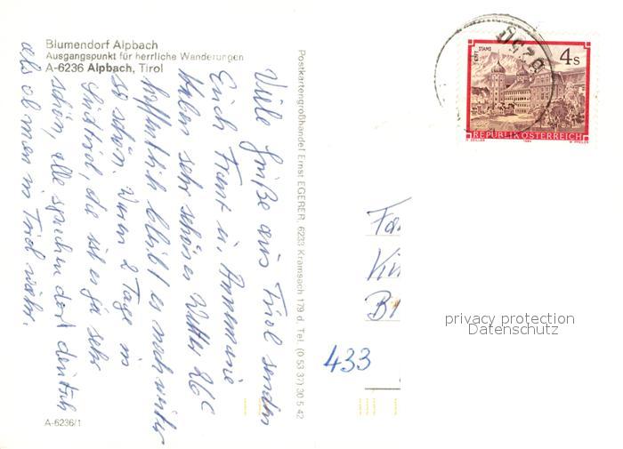 73480522 alte Postkarte Alpbach Blumendorf Stadtpanorama postalisch gelaufen Erhaltung siehe scans [KathaD81] KatCode: 11390335070501