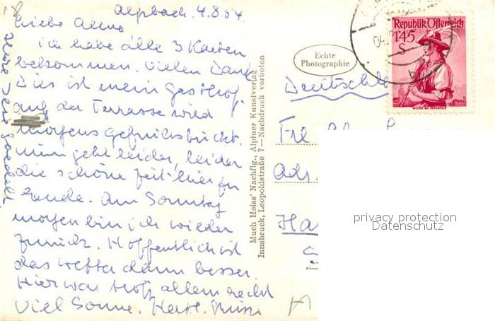 43113224 alte Postkarte Alpbach Gasthof postalisch gelaufen Erhaltung siehe scans [FriedD77] KatCode: 11390335070501