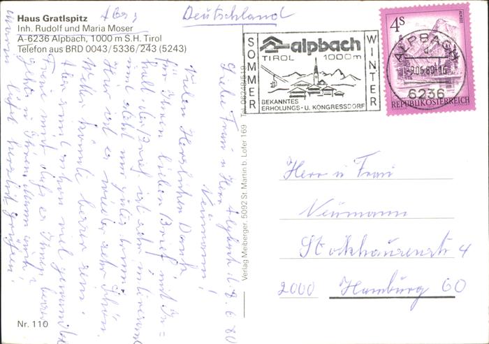 71484289 alte Postkarte Alpbach Haus Gratlspitz Wappen Tirol postalisch gelaufen Erhaltung siehe scans KatCode: 11390335070501