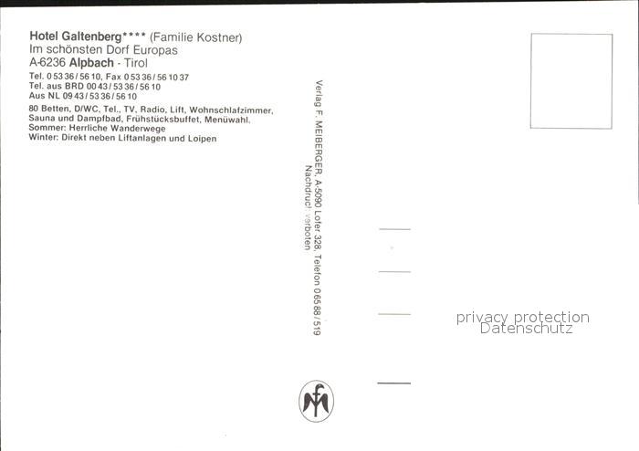 72391713 Alpbach Hotel Galtenberg postalisch nicht gelaufen Erhaltung siehe scans KatCode: 11390335070501