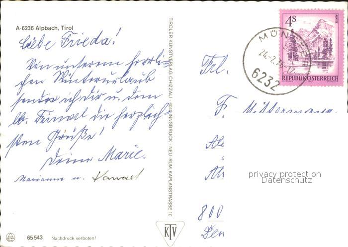 72443153 alte Postkarte Alpbach Kirche postalisch gelaufen Erhaltung siehe scans KatCode: 11390335070501