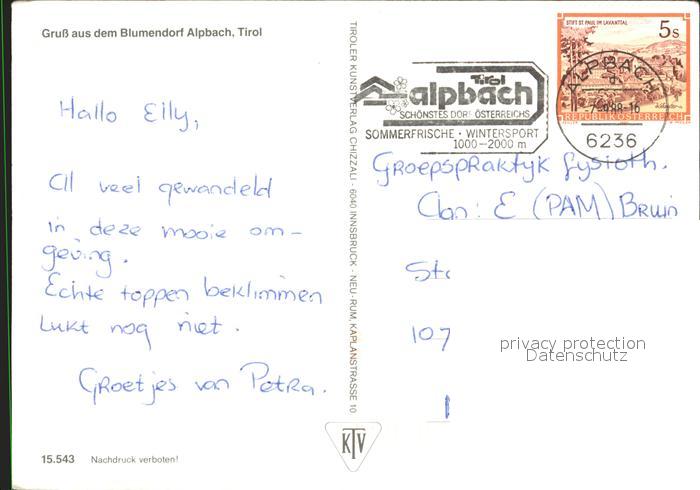 72238787 alte Postkarte Alpbach Ortspartei postalisch gelaufen Erhaltung siehe scans KatCode: 11390335070501