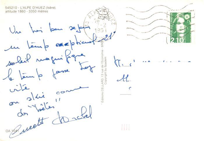 13944717 Alpe d Huez 38 Isere Vue aerienne postalisch gelaufen Erhaltung siehe scans [FriedD77] carte postale Frie Katcode 11170038138191