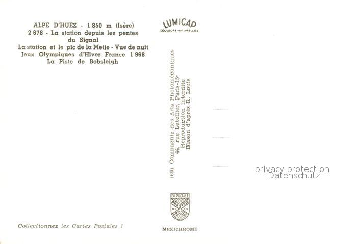 13593241 Alpe d Huez Isere Panorama vue depuis les pentes du Signal Pic de la Meije Jeux Olympiques d Hiver la nuit postalisch nicht gelaufen Erhaltung siehe scans [FriedD77] Frie Katcode 11170038138191