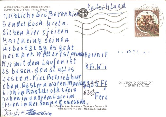 old postcard Alpe di Siusi Albergo Zallinger Berghaus Winterpanorama Alpen postalisch gelaufen Erhaltung siehe scans