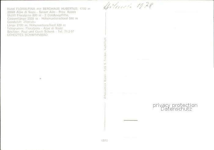 Alpe di Siusi Hotel Floralpina Berghaus Hubertus postalisch nicht gelaufen Erhaltung siehe scans