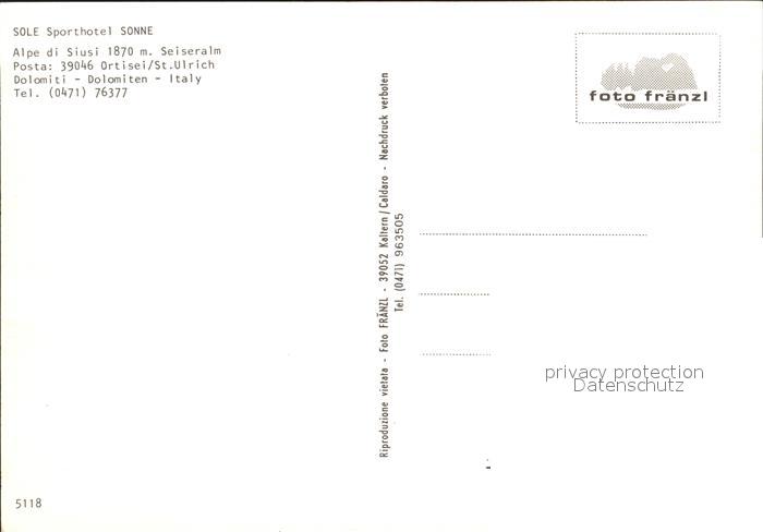 Alpe di Siusi Sole Sporthotel Sonne Wintersportplatz postalisch nicht gelaufen Erhaltung siehe scans