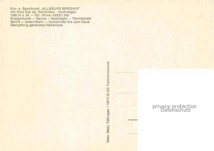 74084836 Alpe-Egg Sonthofen Oberallgaeu Sporthotel Allgaeuer Berghof Fliegeraufnahme postalisch nicht gelaufen Erhaltung siehe scans [WerneD78] KatCode: 11110009780139