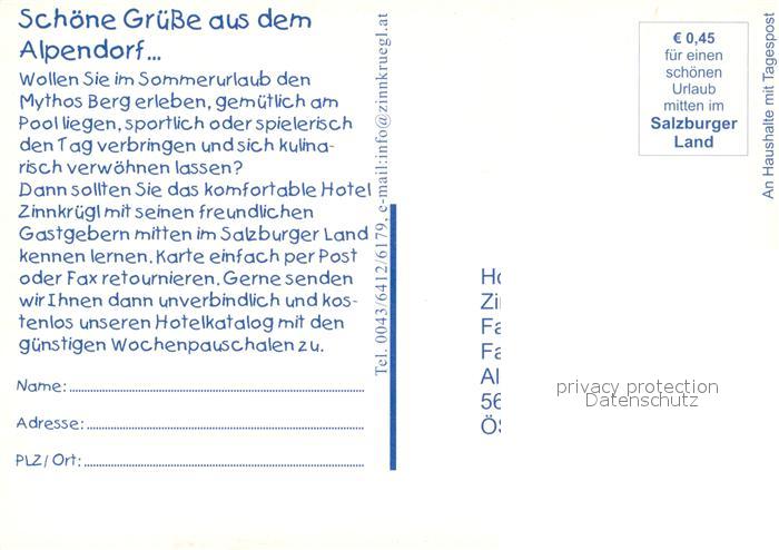 73241950 Alpendorf St Johann Hotel Zinnkruegl postalisch nicht gelaufen Werbekarte (keine Postkarte) Erhaltung siehe scans [KathaD81] KatCode: 11390