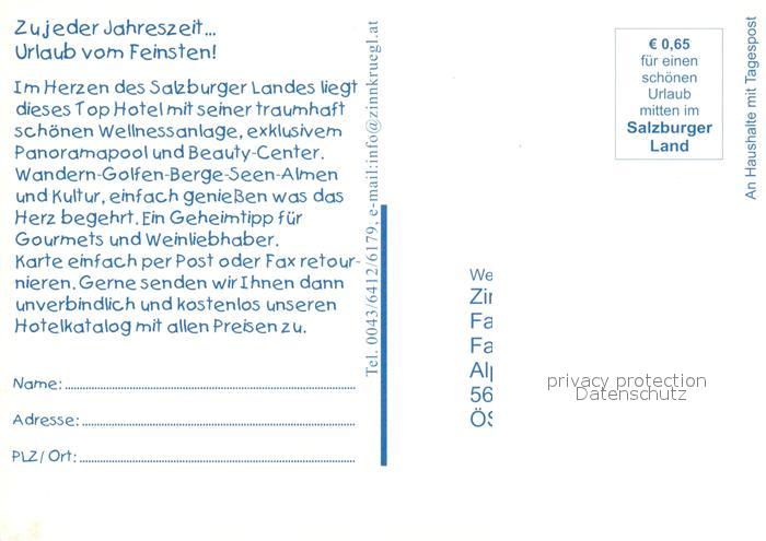 73093754 Alpendorf St Johann ZinnkrueglWellness Gourmet Relax Hotel postalisch nicht gelaufen Werbekarte (keine Postkarte) Erhaltung siehe scans [KathaD81] KatCode: 11390