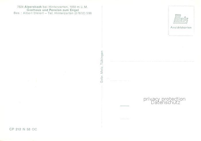 73081757 Alpersbach bei Hinterzarten Gasthaus Pension zum Engel postalisch nicht gelaufen Erhaltung siehe scans [LiesaD40] KatCode: 11110008315052