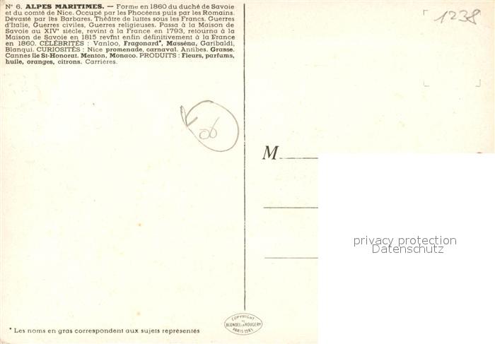 13592342 Alpes-Maritimes Region Carte de la région Duché de Savoie Comté de Nice postalisch nicht gelaufen Erhaltung siehe scans [FriedD77] Frie Katcode 11170006206073