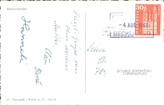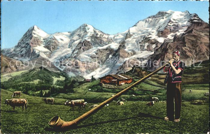 alte Postkarte Alphorn Alphornblaeser Alpen Kuehe postalisch gelaufen Erhaltung siehe scans