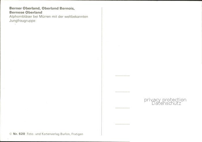 Alphorn Alphornblaeser Muerren Jungfraugruppe postalisch nicht gelaufen Erhaltung siehe scans