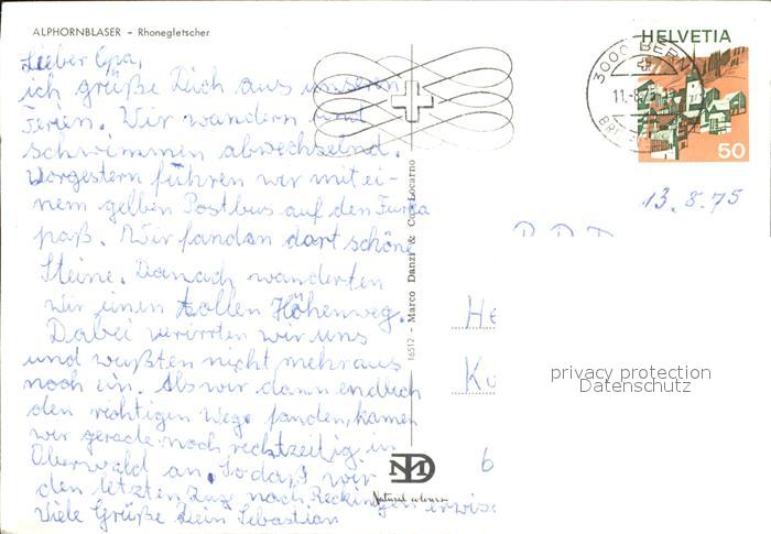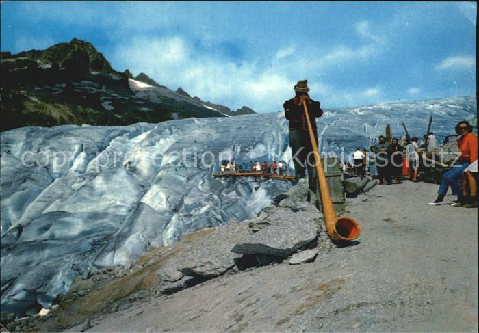 alte Postkarte Alphorn Alphornblaeser Rhonegletscher postalisch gelaufen Erhaltung siehe scans