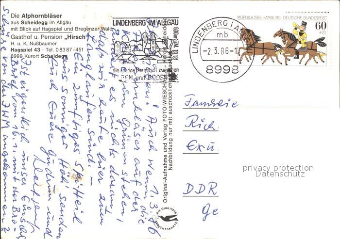 alte Postkarte Alphorn Alphornblaeser Scheidegg Hagspiel postalisch gelaufen Erhaltung siehe scans