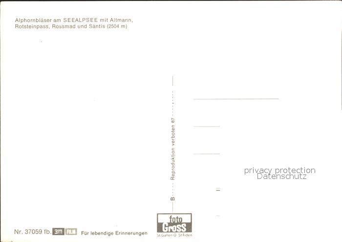Alphorn Alphornblaeser Seealpsee Altmann Rotsteinpass Rossmad postalisch nicht gelaufen Erhaltung siehe scans