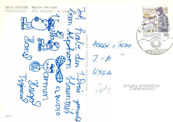 alte Postkarte Alphorn Alphornschule Hergiswil am See Swiss Floklore postalisch gelaufen Erhaltung siehe scans [PaolaD17]