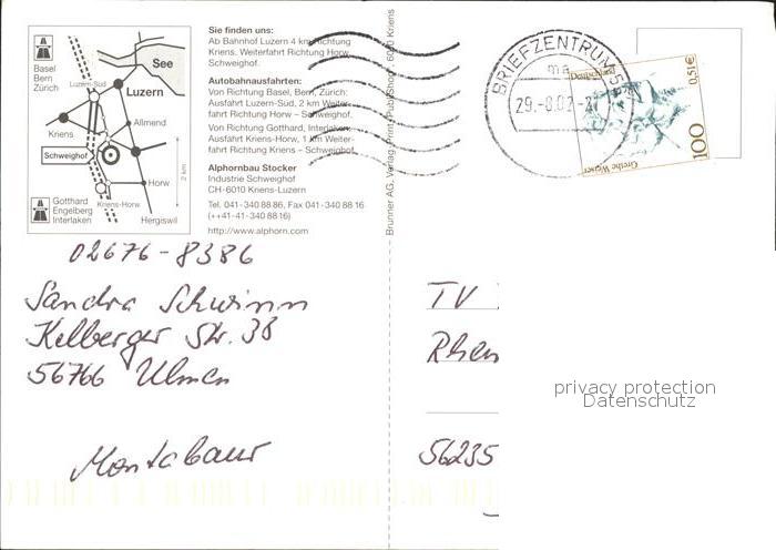 alte Postkarte Alphorn Werkstaette Alphornbau Stocker Kriens-Luzern postalisch gelaufen Erhaltung siehe scans