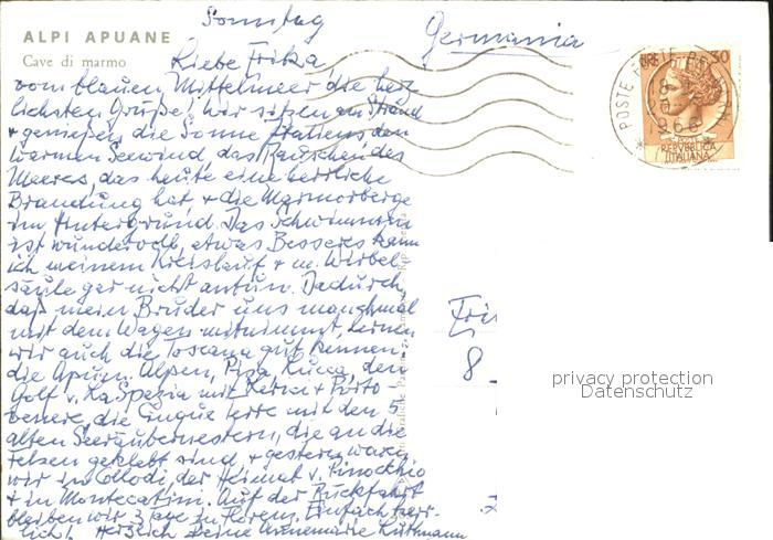 old postcard Alpi Apuane Marmorabbau postalisch gelaufen Erhaltung siehe scans