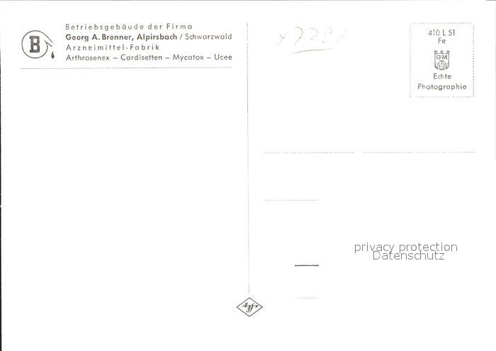 41760627 Alpirsbach Arzneimittelherstellung Georg A. Brenner postalisch nicht gelaufen Erhaltung siehe scans KatCode: 11110008237002