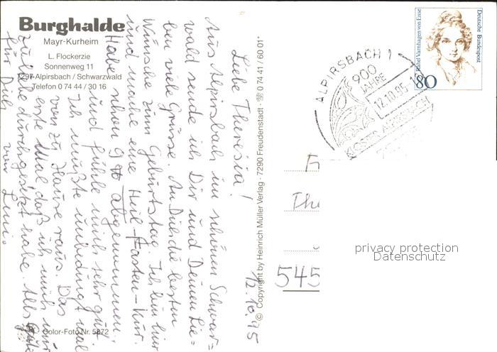 72492331 alte Postkarte Alpirsbach Burghalde Mayr-Kurheim postalisch gelaufen Erhaltung siehe scans KatCode: 11110008237002