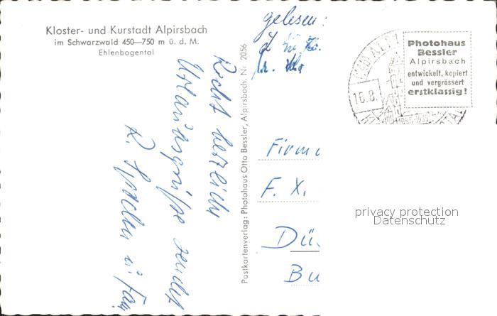 72209321 alte Postkarte Alpirsbach Ehlenbogental postalisch gelaufen Erhaltung siehe scans KatCode: 11110008237002