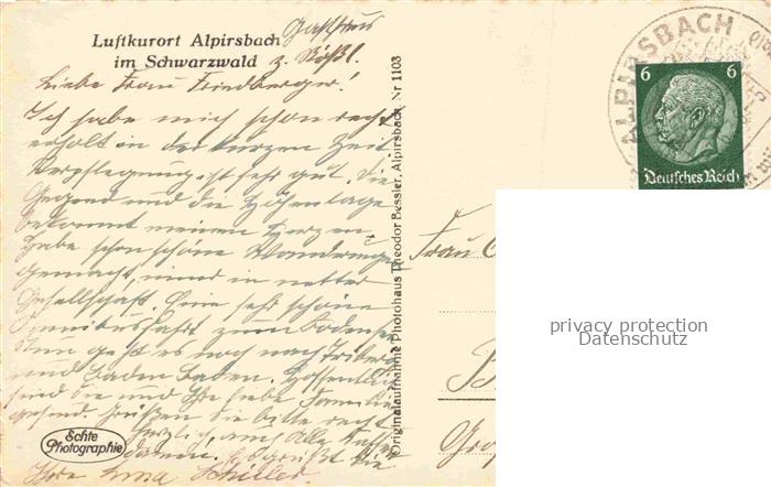 74150487 alte Postkarte Alpirsbach Freudenstadt BW Ansicht vom Waldrand aus postalisch gelaufen Erhaltung siehe scans [FriedD77] KatCode: 11110008237002