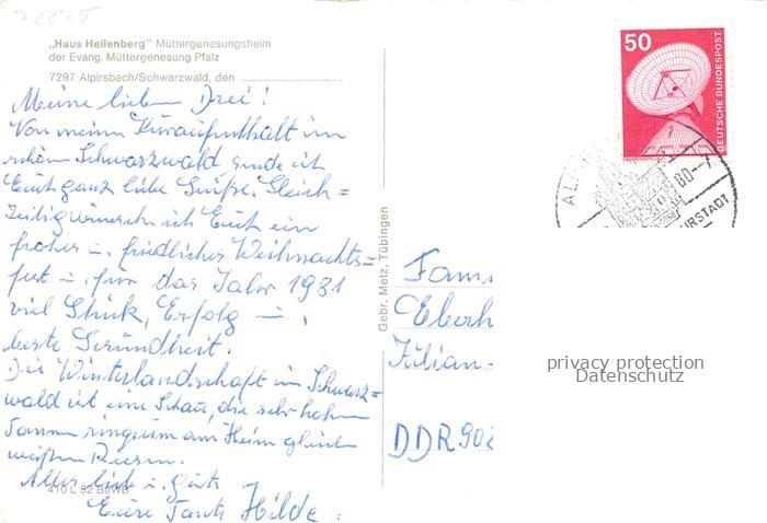 74109979 alte Postkarte Alpirsbach Freudenstadt BW Ev Muettergenesungsheim Haus Heilenberg postalisch gelaufen Erhaltung siehe scans [WerneD78] KatCode: 11110008237002