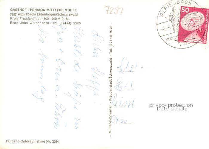73745873 alte Postkarte Alpirsbach Gasthof Pension Mittlere Muehle Gastraeume postalisch gelaufen Erhaltung siehe scans [FriedD77] KatCode: 11110008237002