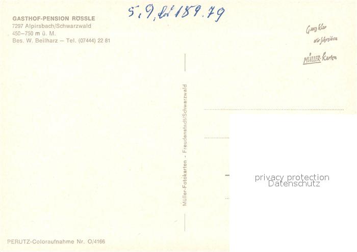 73260023 Alpirsbach Gasthof Roessle postalisch nicht gelaufen Erhaltung siehe scans [NatalD47] KatCode: 11110008237002