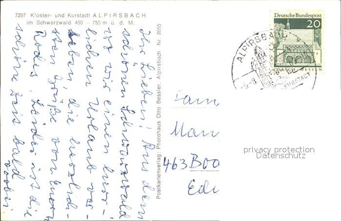 alte Postkarte Alpirsbach Gesamtansicht Kosterstadt Kurstadt Kinzigtal Schwarzwald postalisch gelaufen Erhaltung siehe scans