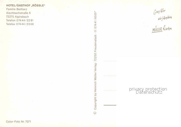 72904465 Alpirsbach Hotel Gasthaus Roessle Fachwerk postalisch nicht gelaufen Erhaltung siehe scans [LiesaD40] KatCode: 11110008237002