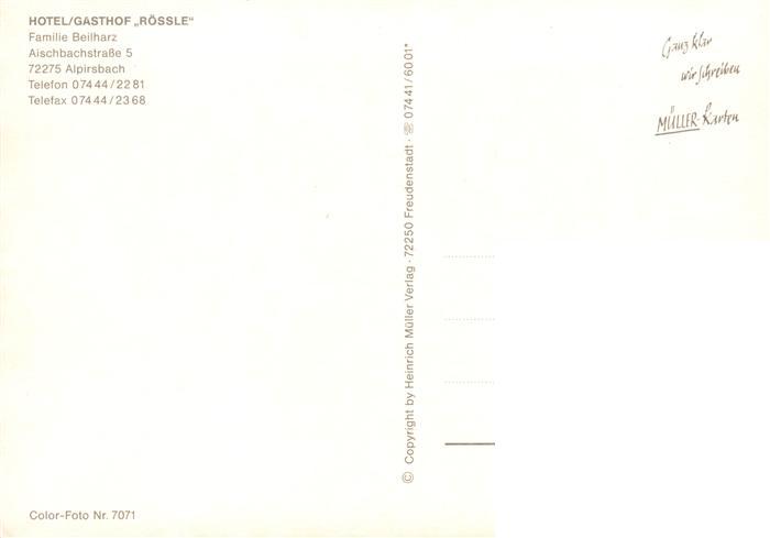 73885935 Alpirsbach Hotel Gasthof Roessle Gaststube postalisch nicht gelaufen Erhaltung siehe scans [WerneD78] KatCode: 11110008237002