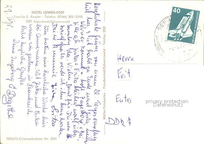 72543649 alte Postkarte Alpirsbach Hotel Loewen Post Gastraeume postalisch gelaufen Erhaltung siehe scans [WerneD78 kv016box] KatCode: 11110008237002