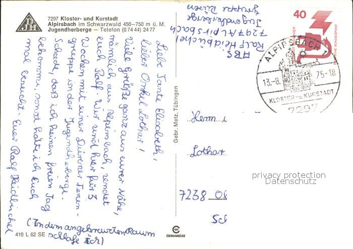 71991990 alte Postkarte Alpirsbach Jugendherberge postalisch gelaufen Erhaltung siehe scans KatCode: 11110008237002
