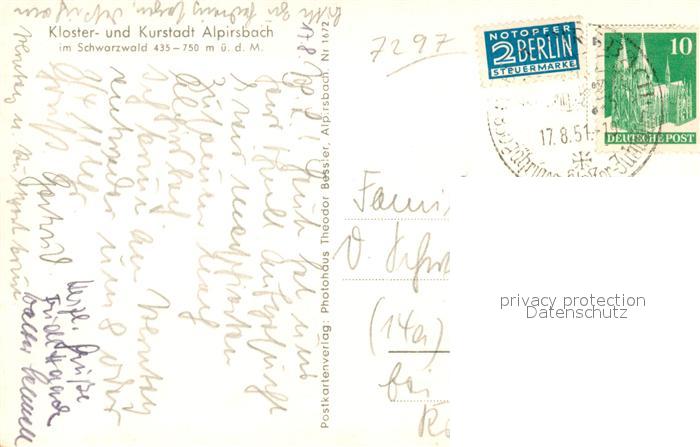 33600953 alte Postkarte Alpirsbach Kloster postalisch gelaufen Erhaltung siehe scans [LiesaD40] KatCode: 11110008237002