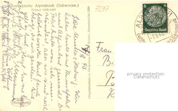 73559034 alte Postkarte Alpirsbach Klosterkirche postalisch gelaufen Erhaltung siehe scans [LiesaD40] KatCode: 11110008237002