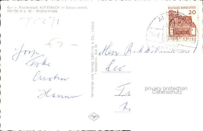 72466298 alte Postkarte Alpirsbach Klosterkirche postalisch gelaufen Erhaltung siehe scans KatCode: 11110008237002