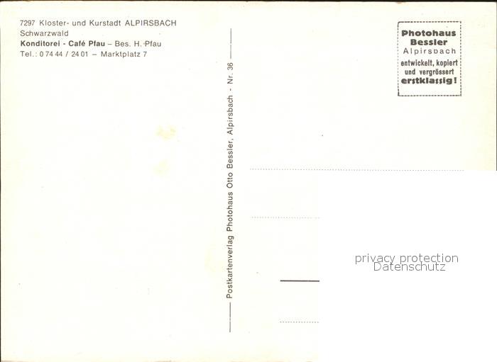 72541086 Alpirsbach Konditorei Cafe Pfau postalisch nicht gelaufen Erhaltung siehe scans [AndreD76 kt119box] KatCode: 11110008237002