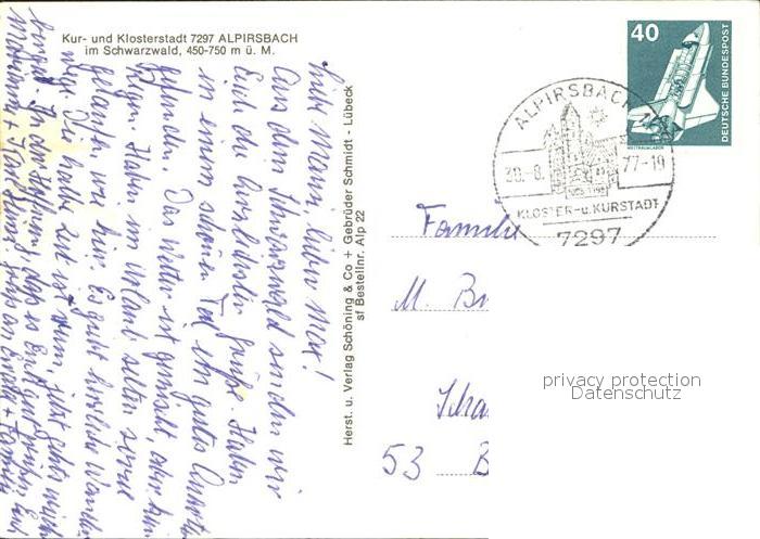 72574405 alte Postkarte Alpirsbach Kur Kloster Stadt Kirche Ansicht postalisch gelaufen Erhaltung siehe scans [KathaD79] KatCode: 11110008237002