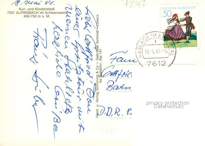 73829833 alte Postkarte Alpirsbach Kur und Klosterstadt Panorama postalisch gelaufen Erhaltung siehe scans [WerneD78] KatCode: 11110008237002