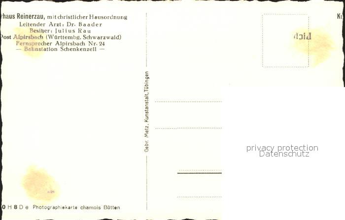 41760278 Alpirsbach Kurhaus Reinerzau Schenkenzell postalisch nicht gelaufen Erhaltung siehe scans KatCode: 11110008237002