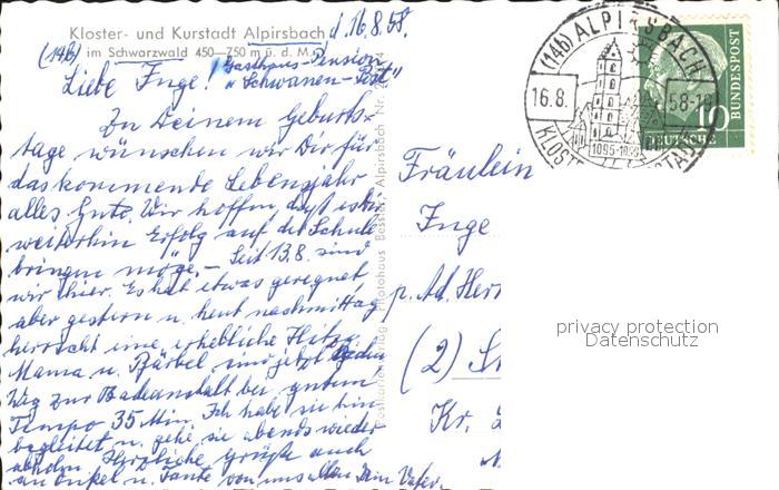 72073825 alte Postkarte Alpirsbach Panorama Kurstadt Klosterstadt Schwarzwald postalisch gelaufen Erhaltung siehe scans KatCode: 11110008237002